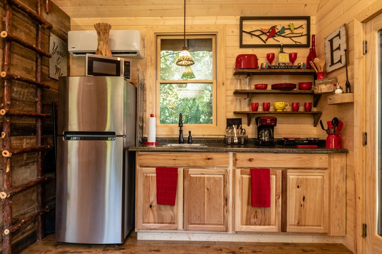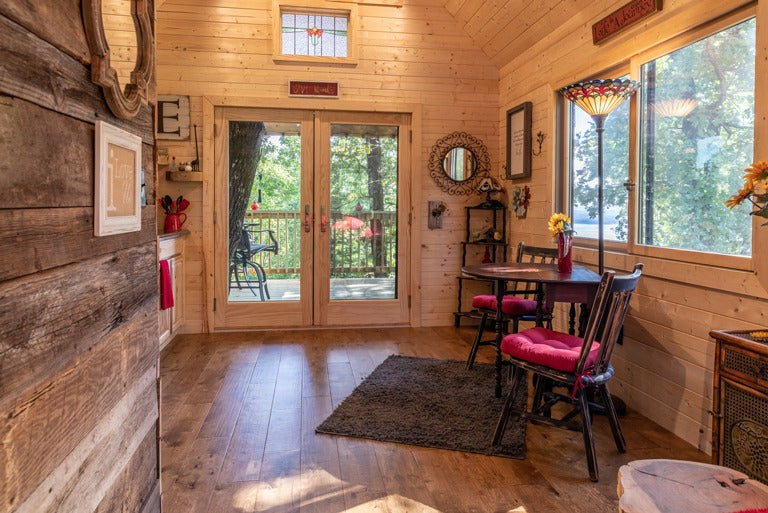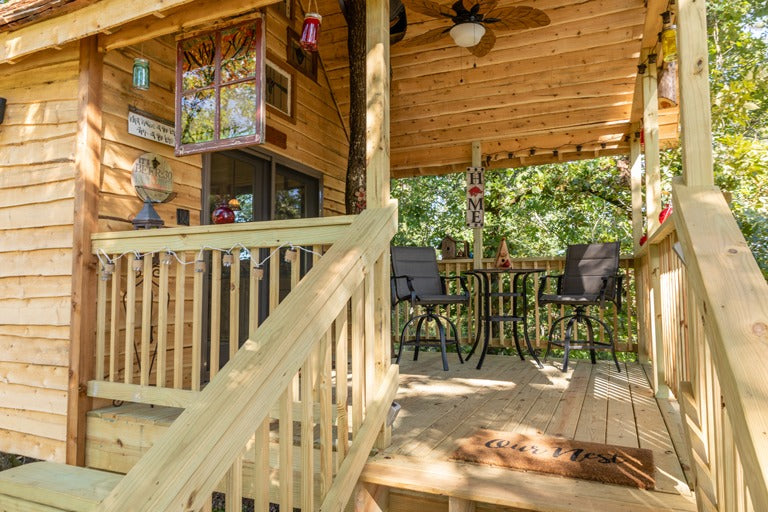 Our clients for the Countryside Hideaway Treehouse were a pleasure to work with. They wanted a restful retreat at their lakeside hideaway on Greers Ferry Lake that they could use year-round. The couple's treehouse contains remarkable features such as a covered porch, bathroom, kitchenette, sleeping loft, and an outdoor shower. It's the perfect place to get away to rest and rejuvenate!