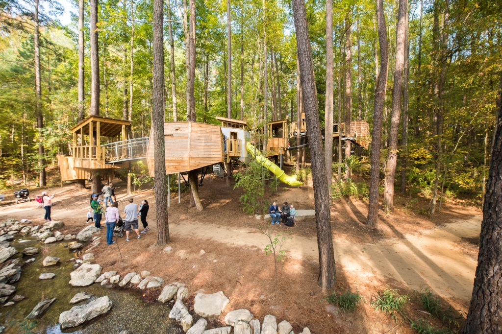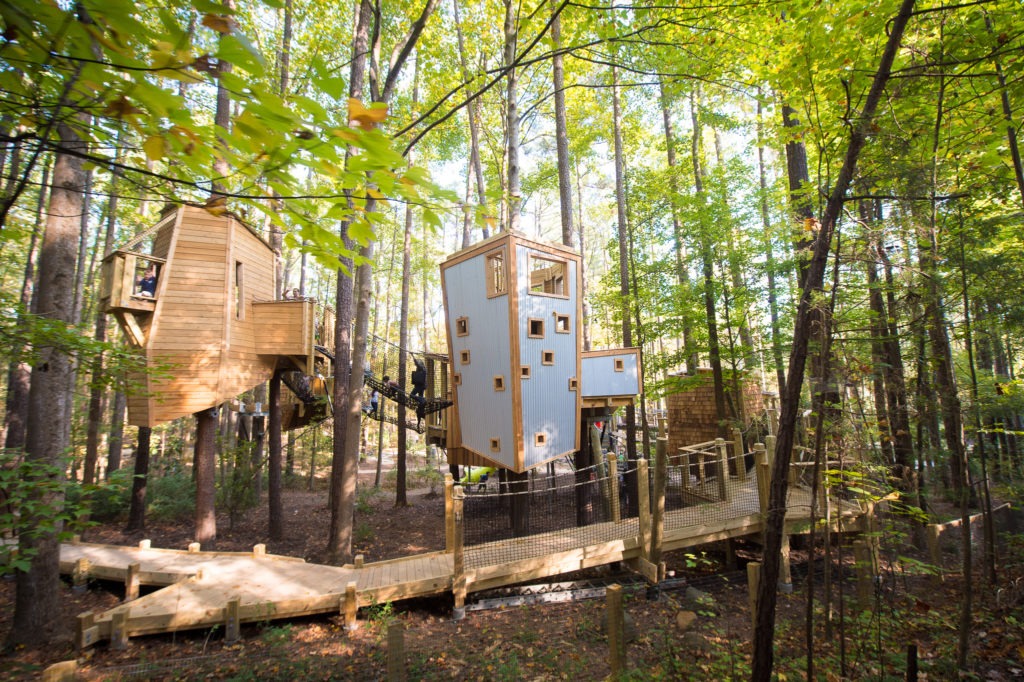 The Treehouse Project at the Museum of Life and Science, Durham, NC, involved a great team of designers, contractors, and museum staff over two years. The team effort paid off as the eight treehouses, nine tree bridges, various slides, walkways, nets, perches, lookouts, and other creative features make it one of the most fantastic treehouses exhibits in the country. As a result, museum attendance has set new records, and the museum decided to phase in the marketing and promotion of the project so that everybody didn't come all at once, which, I think you'll agree, is an excellent problem to have.
