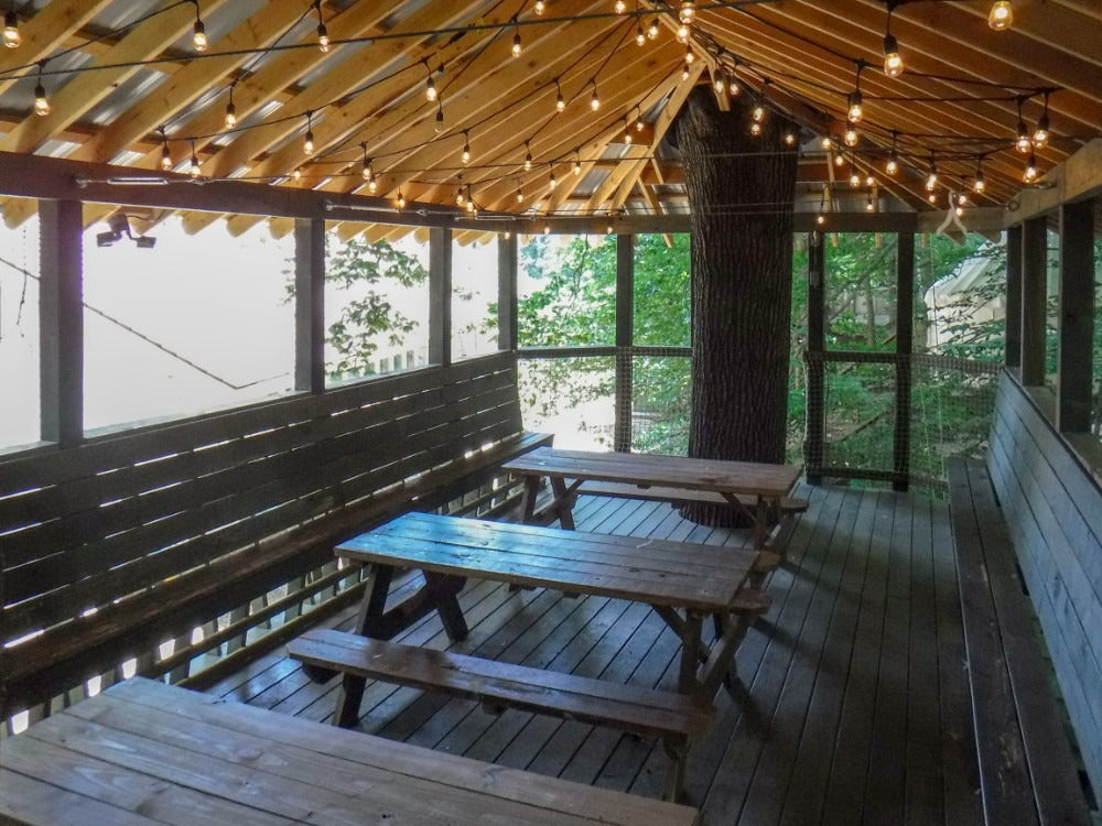Built at our sister location, Treehouse World, the Pavilion Treehouse is the perfect outdoor addition to any space looking to up its alternative seating ideas. Built around two trees, this build is the perfect setting for outdoor meetings or even company lunches and get together. With plenty of seating, anyone can enjoy this outdoor building for various occasions.