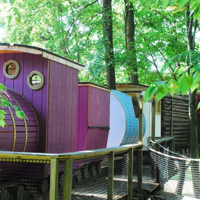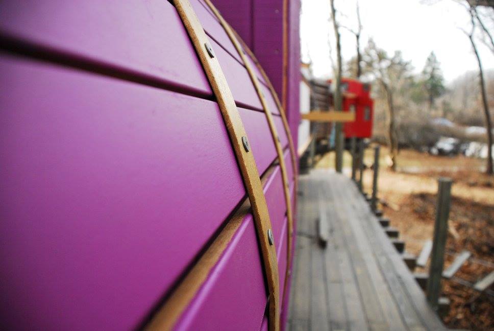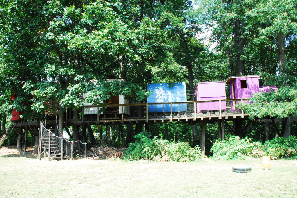 This might be our favorite Treehouse Project ever. The train treehouse combines two of the most popular things with kids of all ages and puts them together in a life-sized exhibit that is imaginative and interactive. You can visit this project at Treehouse World in West Chester, PA.