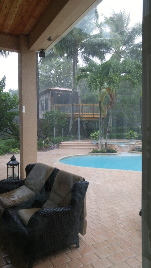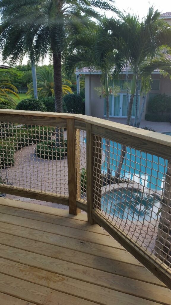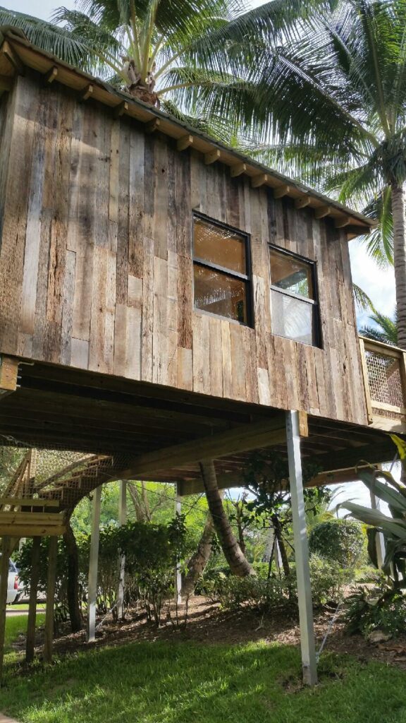 Our client wanted the Treehouse in Paradise as a getaway spot for their teenager entertaining friends by the pool. Palm trees are not suitable for treehouses, so we used metal supports and built the home near them instead.
