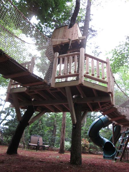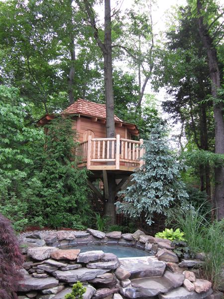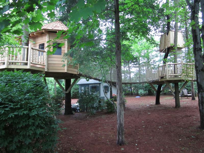A well built custom tree house enhances the natural beauty and compliments the landscaping of a valuable property.
